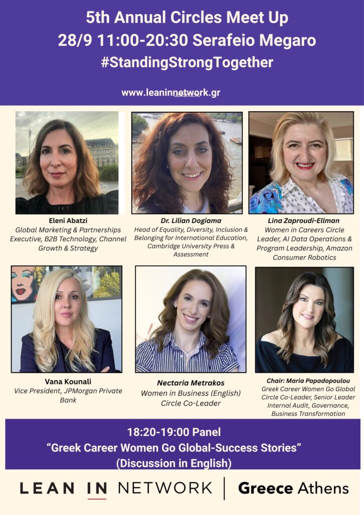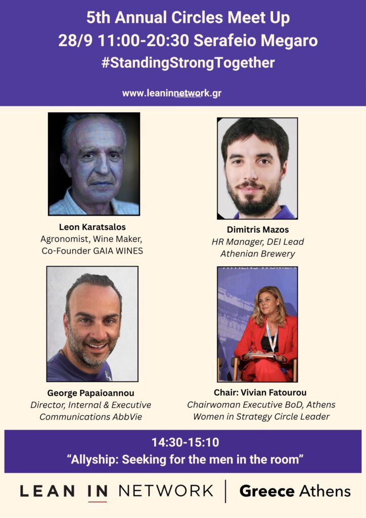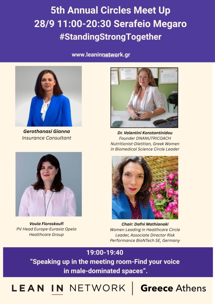 To Lean In Network Greece (Athens) απευθύνεται στις γυναίκες, στις επιχειρήσεις και στην κοινωνία και προσφέρει: